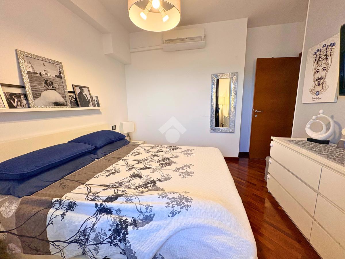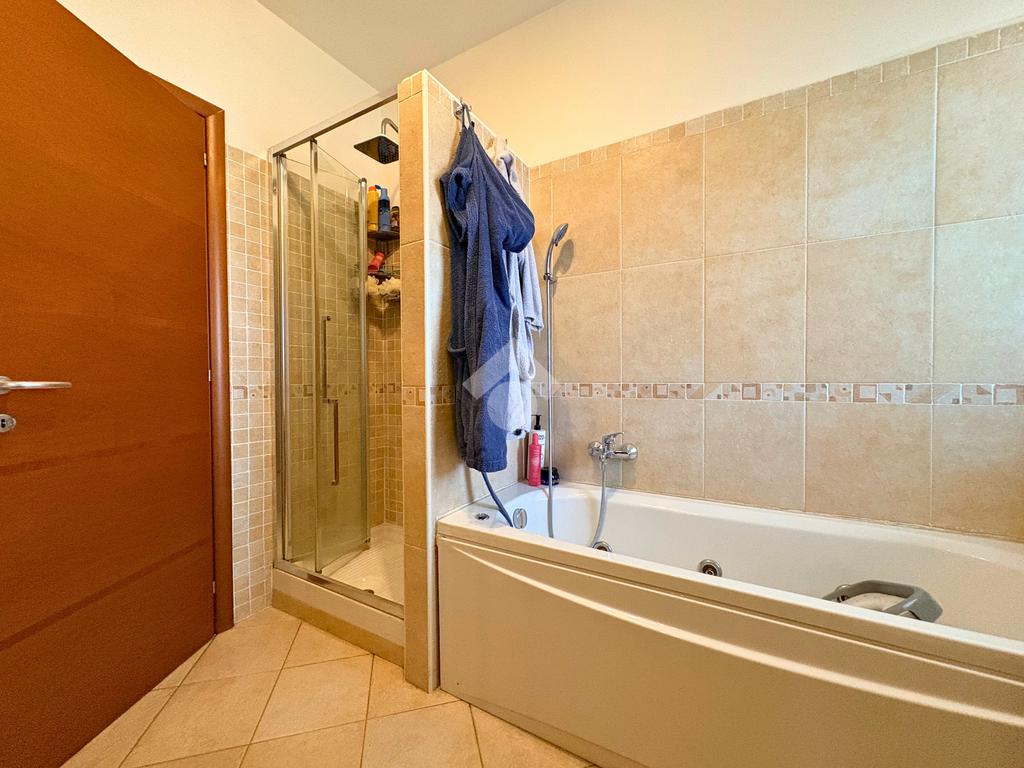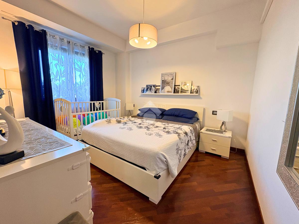 La zona notte, silenziosa e riservata, offre due camere matrimoniali e una cameretta che affaccia su un terrazzo angolare, da cui godere della brezza e del panorama in ogni stagione. Il bagno finestrato, dotato sia di vasca che di doccia, unisce praticità e relax, trasformandosi in un piccolo rifugio quotidiano.