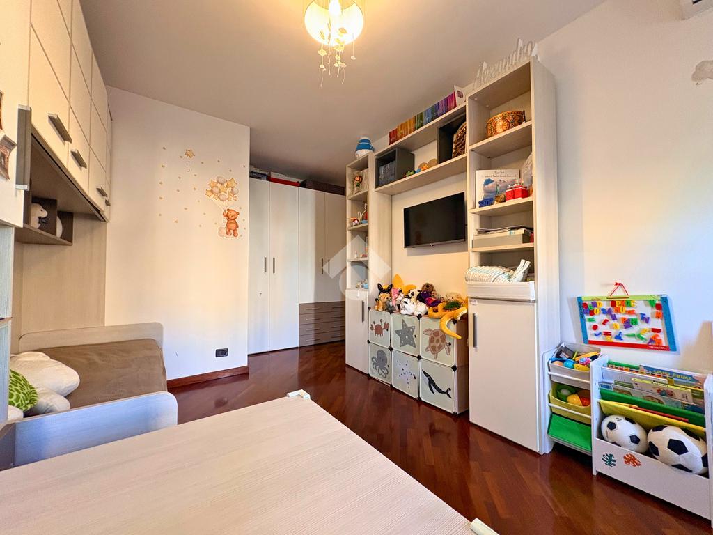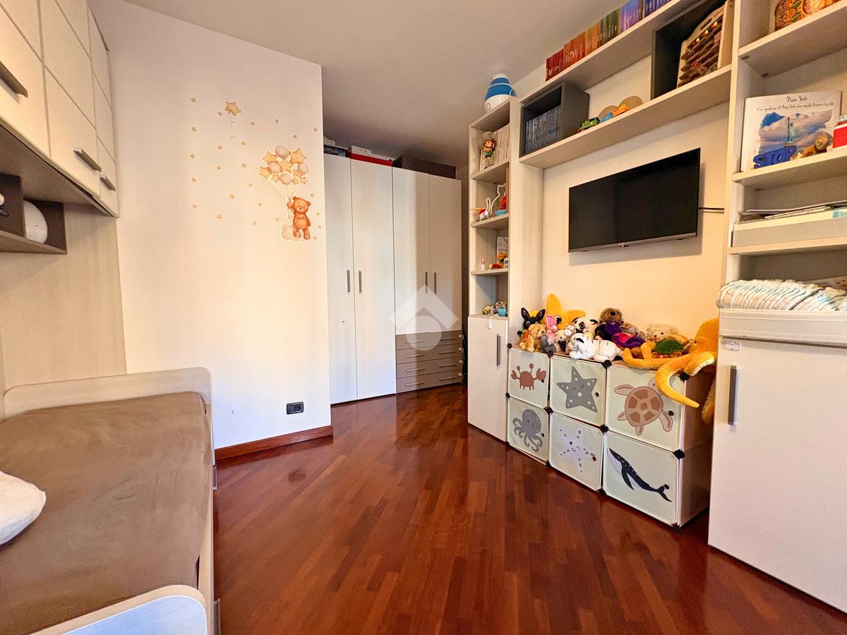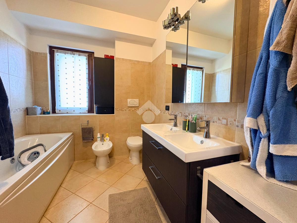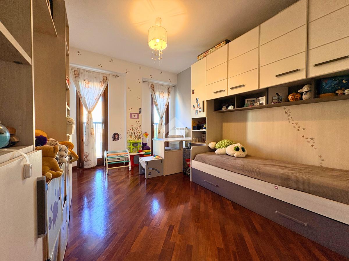La zona notte, silenziosa e riservata, offre due camere matrimoniali e una cameretta che affaccia su un terrazzo angolare, da cui godere della brezza e del panorama in ogni stagione. Il bagno finestrato, dotato sia di vasca che di doccia, unisce praticità e relax, trasformandosi in un piccolo rifugio quotidiano.