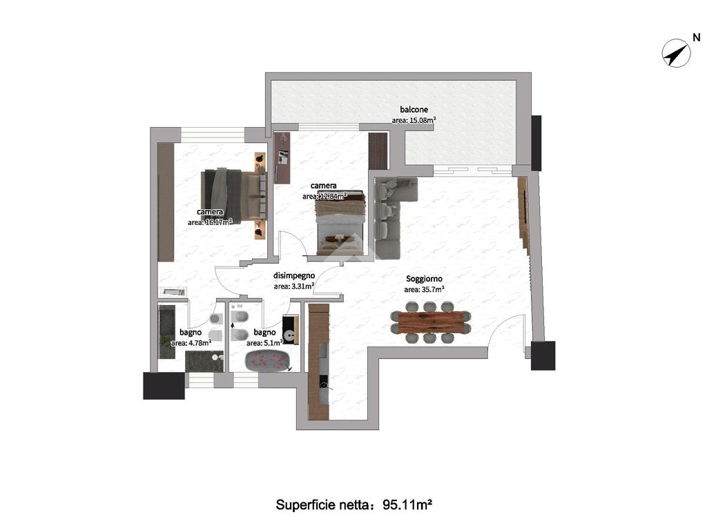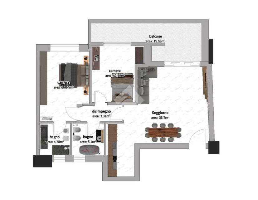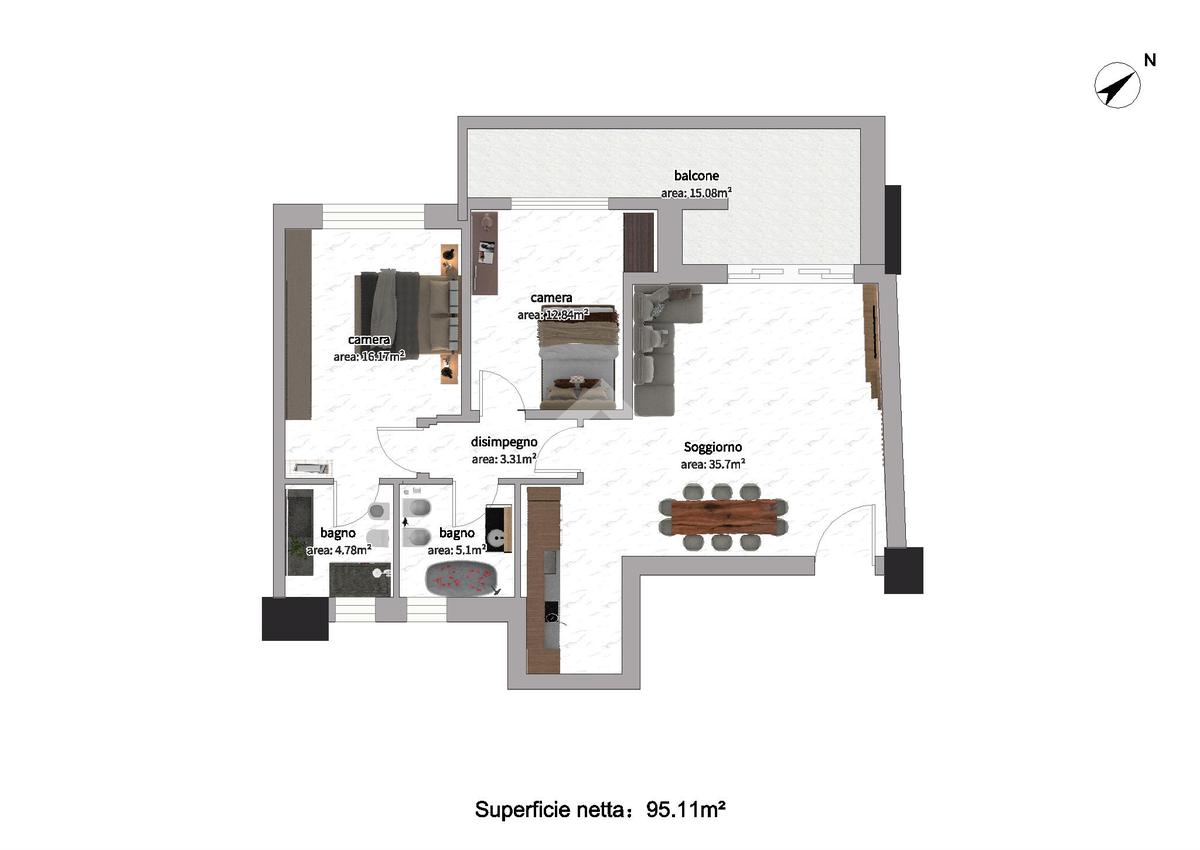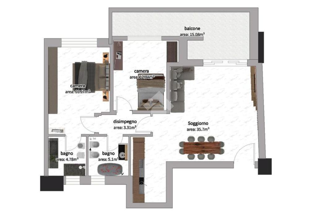 In un contesto residenziale moderno e di recente realizzazione, proponiamo in vendita un elegante appartamento situato al terzo piano di una palazzina signorile. L’abitazione si apre su un comodo soggiorno con angolo cottura semi separato, pensato per coniugare comfort e funzionalità. Un disimpegno conduce alla zona notte, dove si trovano una camera, un bagno finestrato con doccia e una spaziosa camera matrimoniale dotata di bagno privato finestrato con vasca.