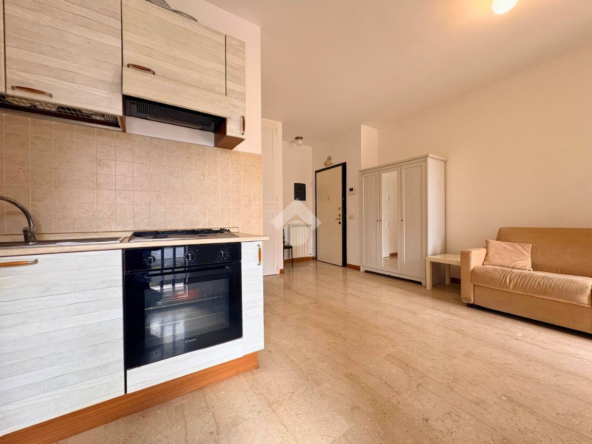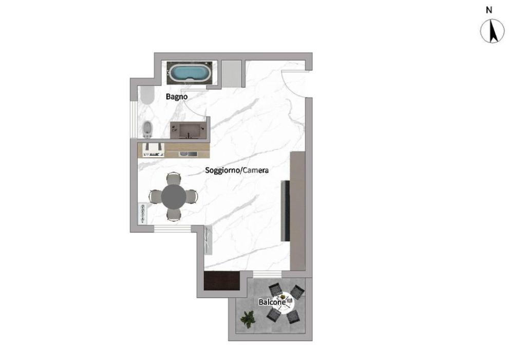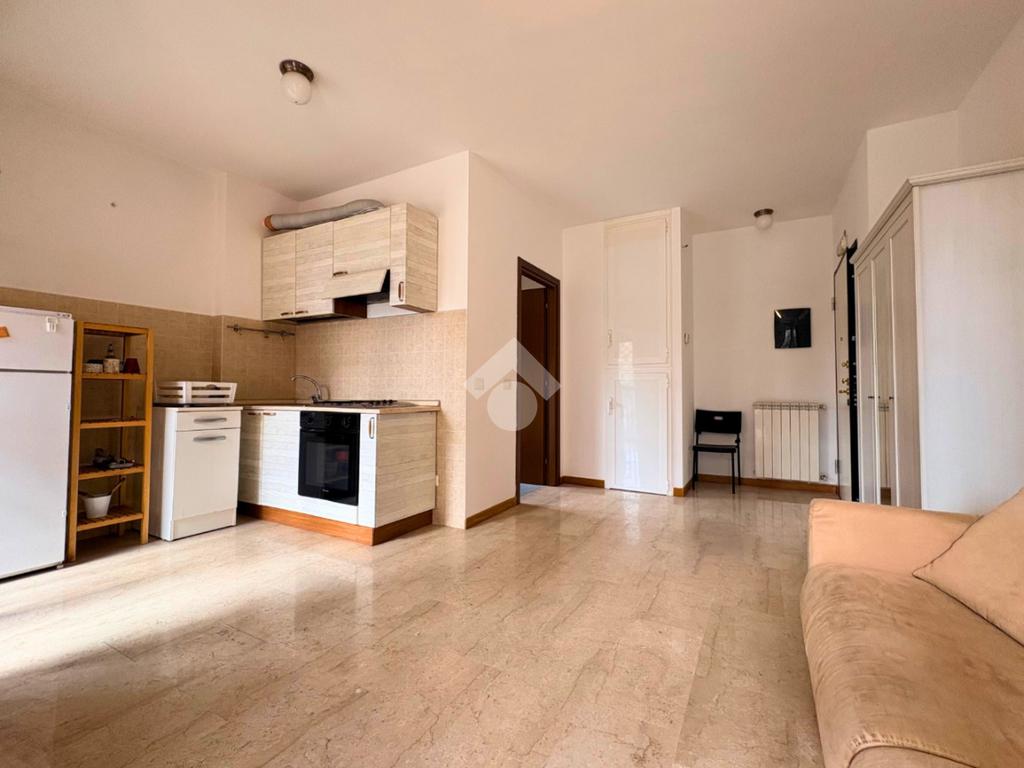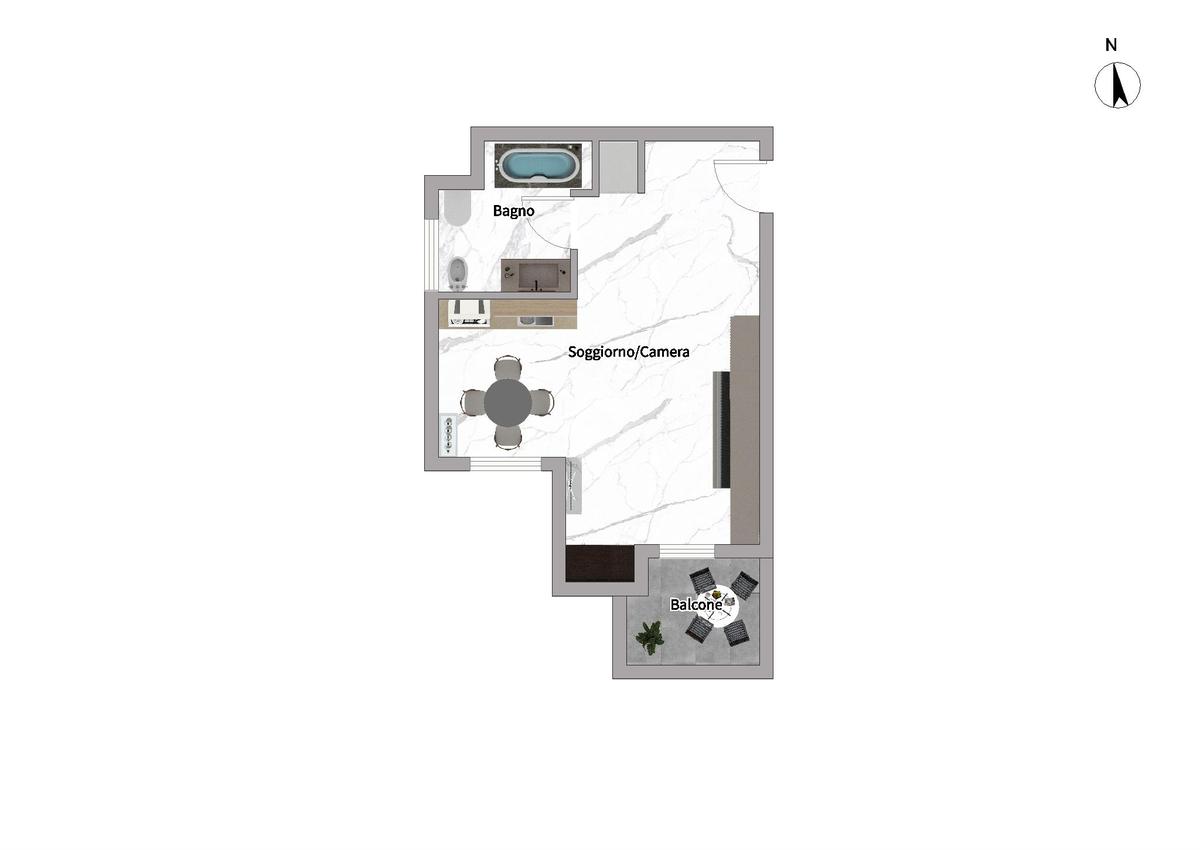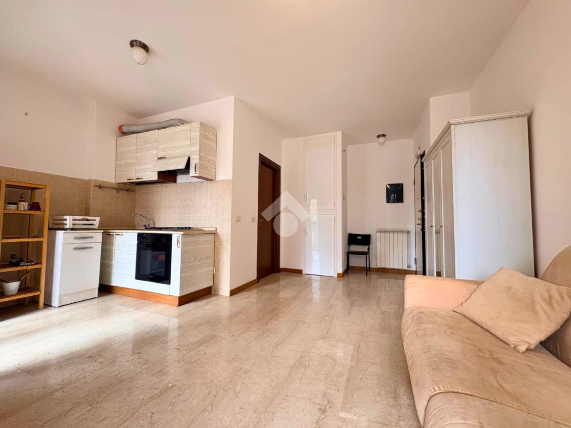 L’appartamento si apre su un accogliente ambiente open space che integra soggiorno e zona notte in un unico spazio armonioso e ben distribuito, arricchito da un angolo cottura funzionale e moderno.