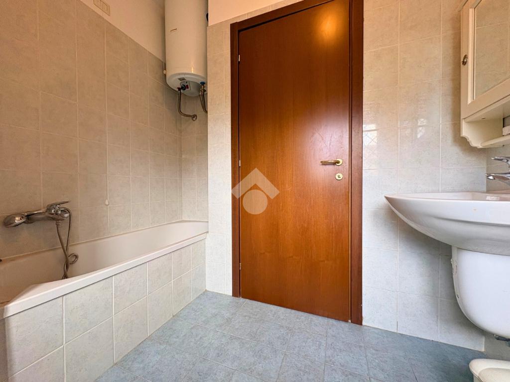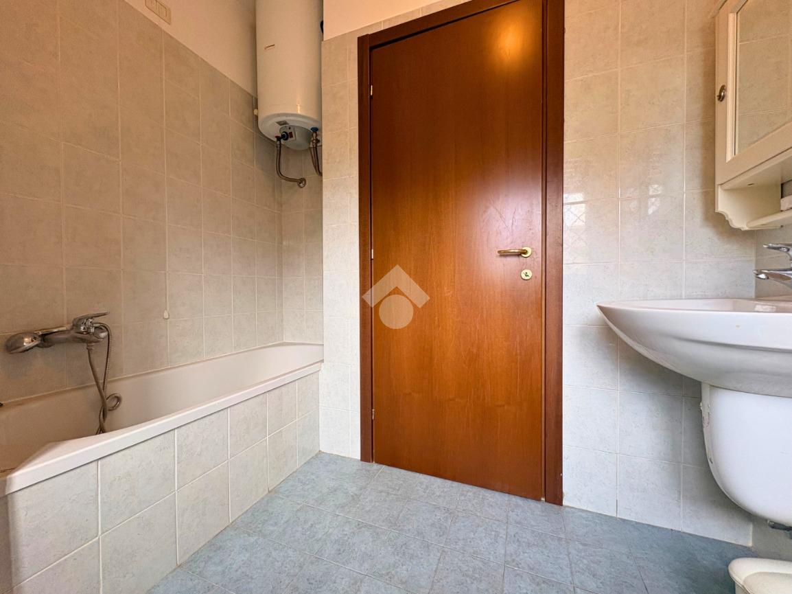 Il bagno, ampio e dotato di finestra, presenta una vasca da bagno che dona all’ambiente un tocco di comfort e praticità.